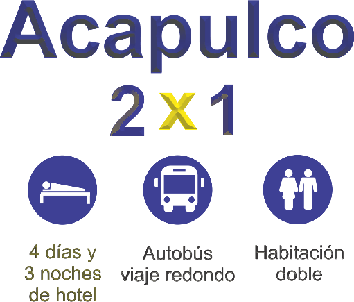 Paquetes incluyen: Autobús viaje redondo saliendo de terminal Taxqueña, 2 noches de hotel, e impuestos. Costos pagaderos en pesos mexicanos.